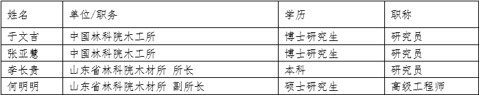 中國林業(yè)科學(xué)研究院木材工業(yè)研究所、山東省林業(yè)科學(xué)研究院、東北林業(yè)大學(xué)、北京林業(yè)大學(xué)、內(nèi)蒙古農(nóng)業(yè)大學(xué)